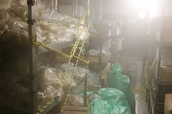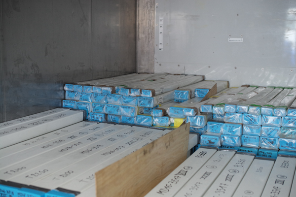 Nos sections conditionnées doivent effectivement pouvoir arriver sans encombre en région parisienne, on parle là de plusieurs tonnes de matériel. L'ensemble des sections en outre doit être conservé à 4 degrés Celsius. Heureusement la logistique contemporaine a une solution à bien des difficultés. L'ensemble de nos échantillons est rangé dans un "Reefer", contraction de refrigerated-container (container réfrigéré).  En voici quelques photos du processus.