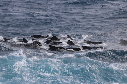 Puis, nous sommes également dans une zone entre les quarantièmes rugissants et les cinquantièmes hurlants, là où très peu de bateaux viennent. Hier, nous avons essuyé une tempête et une mer démontée. Il était bien rassurant d'être sur un gros bateau, spécifiquement conçu pour cela, et mené par un équipage nombreux et extrêmement compétent.