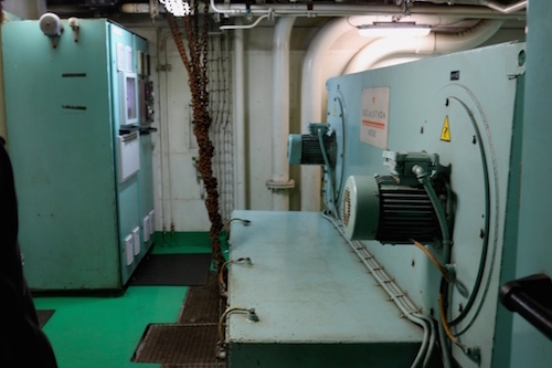 Pour répondre à votre question, je suis allé visiter la salle des machines accompagné par Yvan qui travaille dans le bateau pour l'Institut Polaire Français.