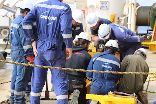 La campagne nécessite d'embarquer un nombre conséquent de personnes. Entreprendre du carottage sédimentaire fait appel à plusieurs métiers. Il faut des ingénieurs très compétents et des techniciens en nombre pour concevoir et diriger la manœuvre du carotteur qui pèse plusieurs tonnes. Il s'agit d'un véritable travail d'équipe. Vous pouvez également imaginer qu'un tel outil ne pourrait pas tenir sur une planche à voile qui s'enfoncerait sous le poids de l'engin.