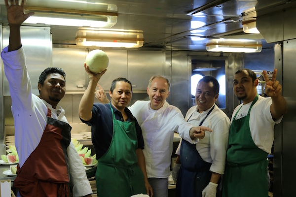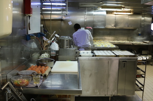 Nous mangeons très bien. Le cuisinier met beaucoup de soin à nous faire à manger. Nous sommes plusieurs à redouter de prendre du poids. Heureusement qu’il existe une salle de sport dans le bateau.