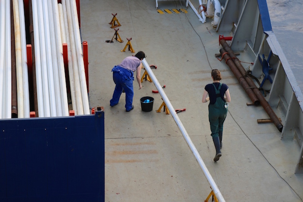 Et le travail se fait très efficacement. La coopération entre l’équipe scientifique, l’équipe d’ingénieurs et l’équipage permet de réaliser des carottages même dans des conditions difficiles. Tout le monde est motivé y compris pour des travaux un peu répétitifs.